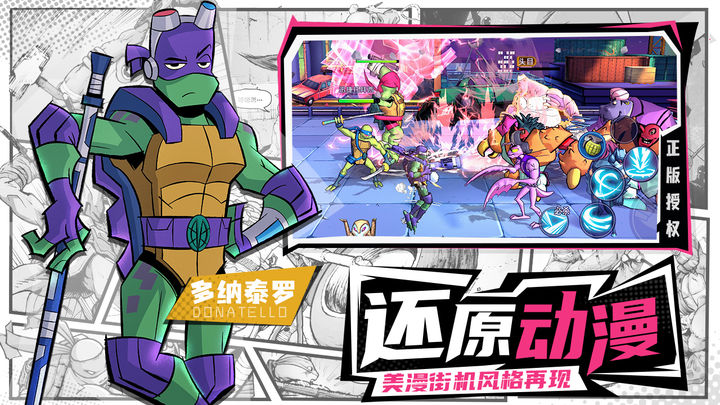 1. IP正版授权:游戏是官方正版授权的作品,忠实再现了原作中的经典元素和故事情节,让你能够深入感受到忍者神龟的世界。