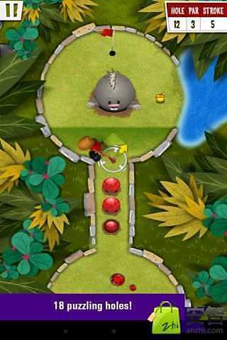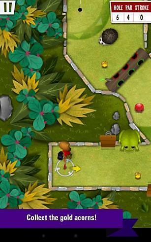 你要控制小松鼠用坚果来打高尔夫球,看谁的分数最高,18洞的经典高尔夫游戏配上卡通造型,绝对是休闲游戏的首选之作,游戏操作很简单,和愤怒的小鸟一样,按住屏幕调整方向和力度,然后松手将坚果弹射出去就ok啦!