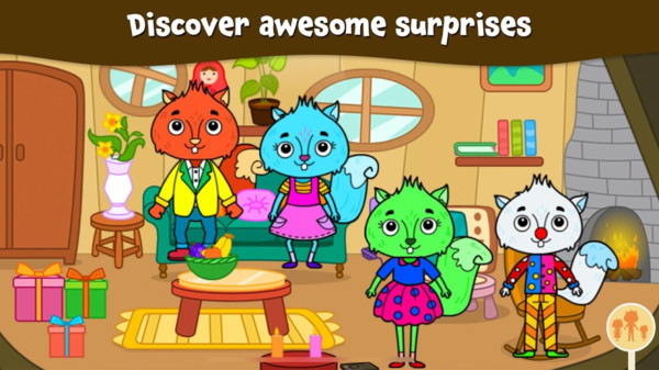 这是一款卡通风格装饰游戏。故事发生在热闹的动物城镇之中,玩家在游戏中饰演可爱的小松鼠 角色 ,和家人欢乐的生存在自己的小屋之中,平凡而朴素的日常故事!您的松鼠朋友和家人正在这个幻想娃娃屋等着你!和9个松鼠朋友和家人一起玩,共有9位新的兔友和家人,充满令人兴奋的惊喜和互动!