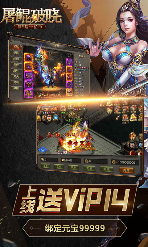 1、创建角色送vip14,99999绑元,10亿绑定金币,充值50元到v15;
