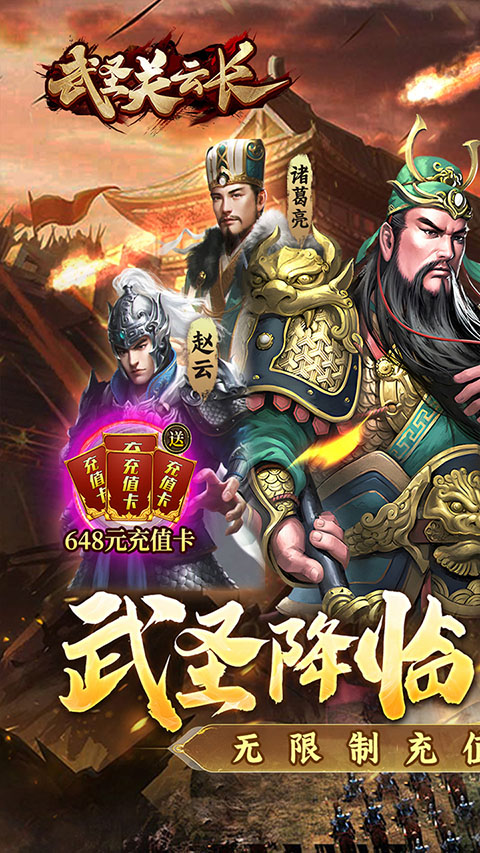 2、创角即送“0.1折随心充"称号,红将关羽*1,648元充值卡*1,铜币*1亿