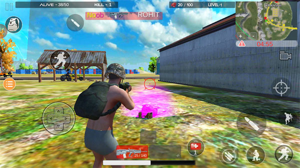 2、完善的瞄准和射击系统,为您提供免费生存的刺激体验:火战场与皇家。