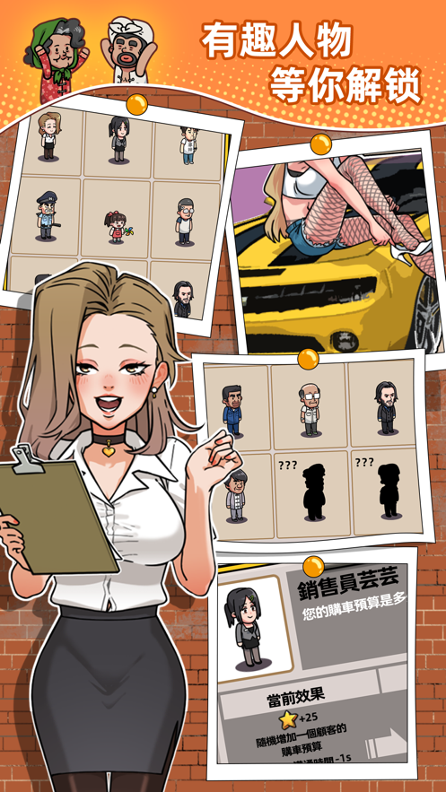 玩家需要招募员工来服务每位顾客,玩家每卖出一辆二手车就能获得不小的奖励。