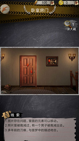 3、线索的查找是通过点击的方式,点击错误会扣除我们的体力,我们的初始体力是100点,线索寻找错误会扣除10点。