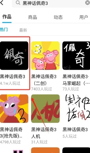 2、在里面搜索框搜索黑神话佩奇游戏。