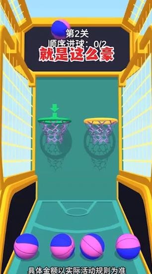 在所有的关卡中有一个专业的投篮架只需要玩家将球投进框内。