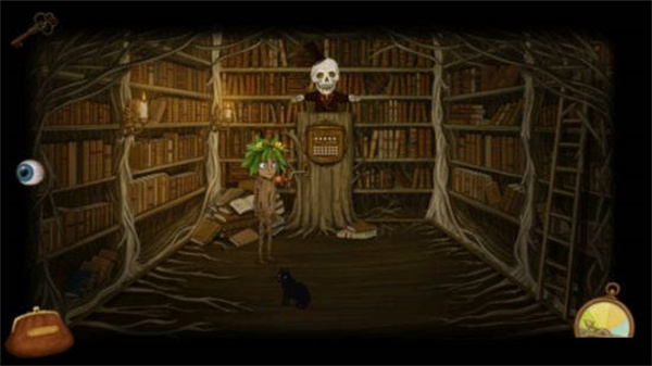 转动拉杆,好像要转3遍?弹出一个拿着书的骷髅,调季节让图书室的人消失,移动两次梯子,拿书!