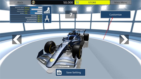 2、游戏中的赛车需要定期维护和调整,玩家必须根据赛道情况调节轮胎、刹车和发动机,优化赛车性能,以便应对不同的挑战;