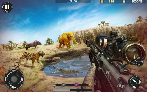 在游戏中,玩家需要选择专属的狩猎武器,并选择隐蔽的位置射击动物。