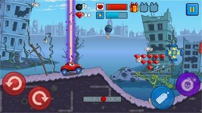 2、您可以收集升级道具和射击敌人,或者您也可以猛踩油门来超越他们。