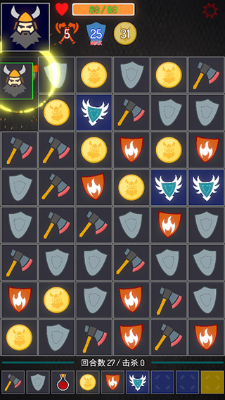 总体来说,这款游戏的玩法还是属于比较简单的,但策略性方面也尤为强烈,除了需要掌握常规的消除规则,而且如何制定设计勇士的行走路线,最大化运用“攻击”、“护盾”、“金币”、“恢复”四大类符文,击杀随机生成的BOSS则是游戏的关键。