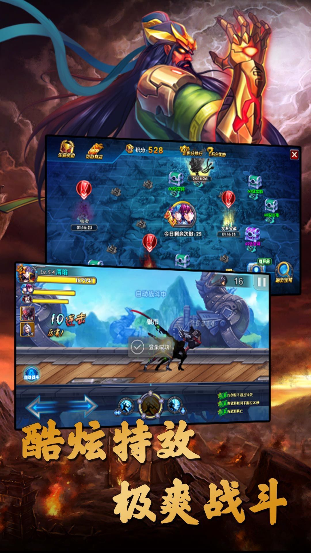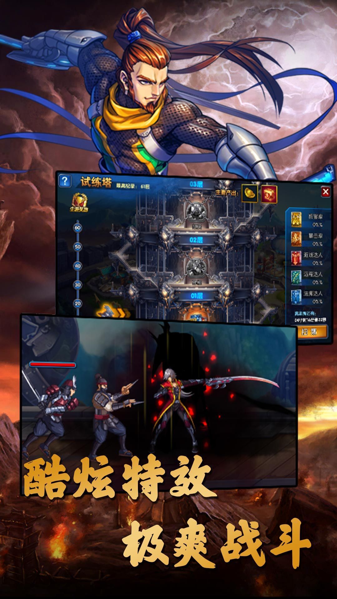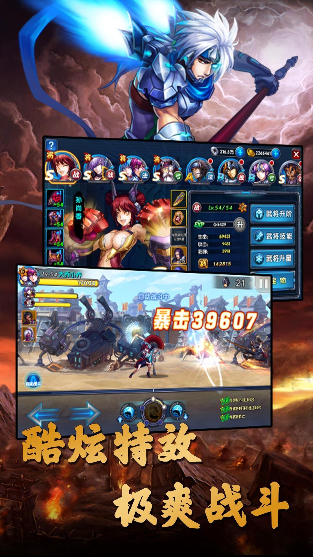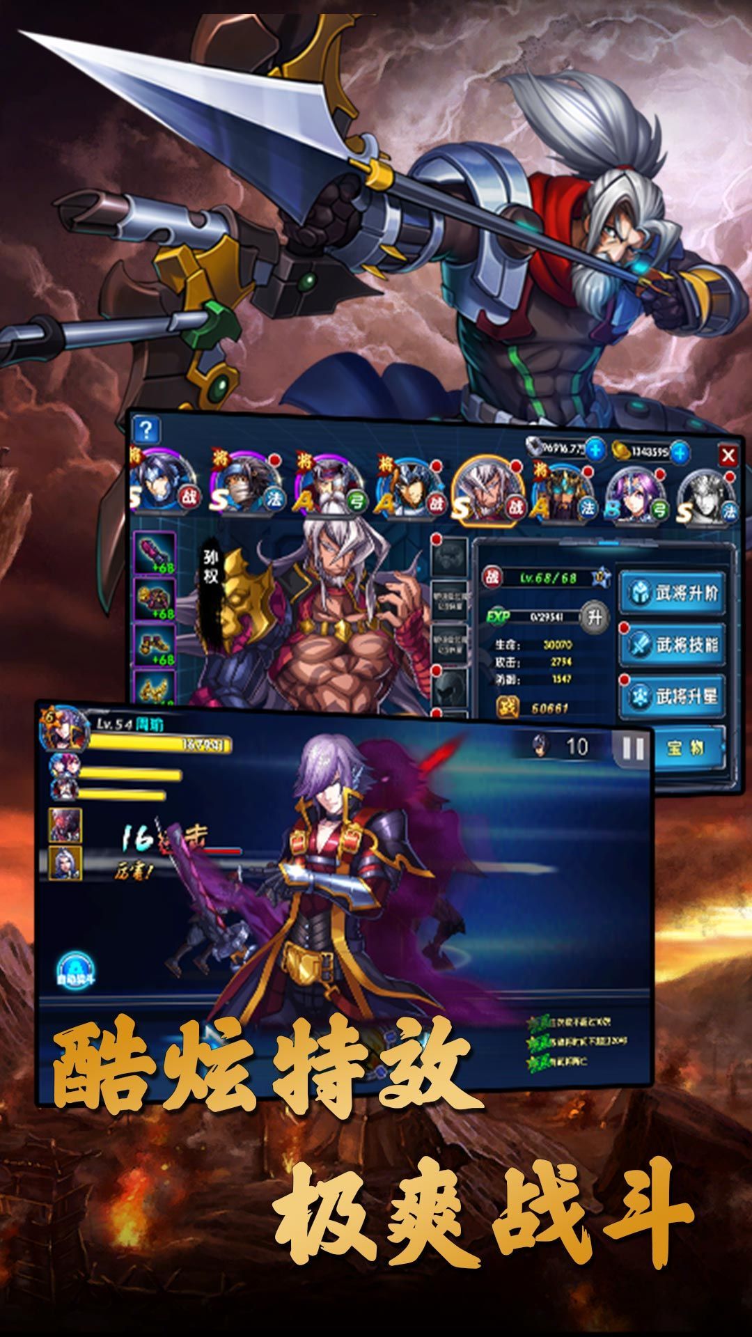 3、三国名将,强势登场,将你喜爱的武将培养到顶级,化身神将,惊天地,泣鬼神,享受一夫当关万夫莫开的爽快战斗感;