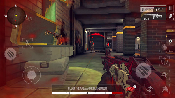 6、进入战斗界面,会听到僵尸的叫声,注意观察你的四周,通过射击或者扔雷,把所有的僵尸消灭,