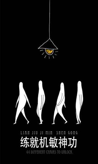 无敌的椅子是一款非常好玩休闲益智手游,游戏界面采用精简的画面风格塑造,单调的黑色背景、幽默的人物角色设计,以及清新的亮灯音乐置入,给人一种动画既视感十足的感觉。玩法上,无敌的椅子与传统的抢凳子游戏相仿,规则十分的简单,玩家只需在亮灯的瞬间点击屏幕抢椅子即可完成闯关,继续下一关,但如果连续抢到44把椅子,那么你就是“无敌”的。此外,游戏不但兼具单人、双人模式,而且逼格甚高,非常的考验玩家的反应能力。