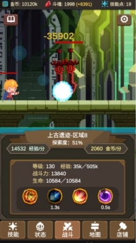 2、你可以在游戏商店中购买道具,可以帮助你更好的打怪。
