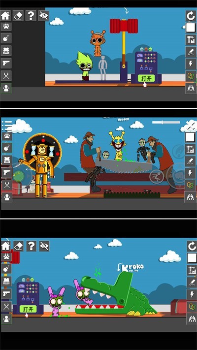 2、高度自由的沙盒元素:玩家可以在游乐场中自由创造和破坏,没有任何限制,尽情释放想象力,制造混乱。