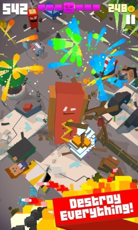 在游戏中,你是毁灭之王,你的任务是摧毁一座繁荣的城市,这是非常具有挑战性的,沿途收集金币,在这条宽阔的道路上控制主人公的自由冒险,你可以随意击倒各种建筑和人类,精致美丽的游戏画面和有趣的动感音乐,在这座城市开始你的毁灭。