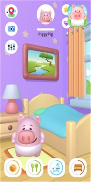 2、开心小猪宠物,快乐陪伴宝宝,抚摸安慰宠物小猪就能得到金币奖励。