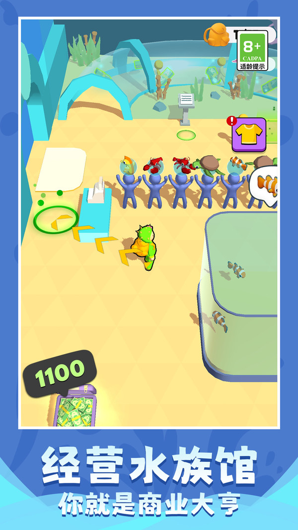 在这款游戏中你需要经营一家属于你自己的水族馆,每天都会有顾客来此光顾,游戏的过程非常解压。