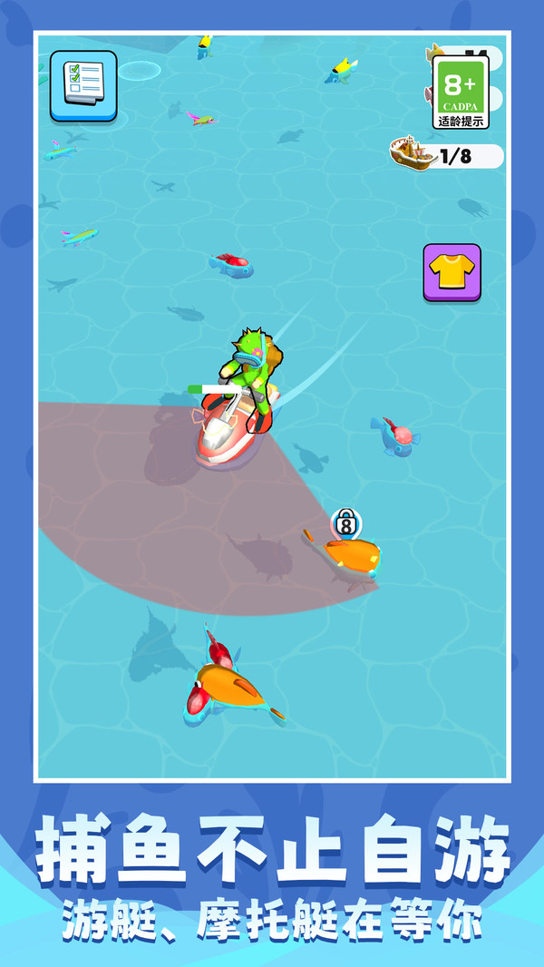 摸鱼先锋是一款休闲解压的小游戏,在这款游戏中你需要通过在海水里捕鱼的方式扩充你的水族馆,以此来获得相应的经营收入,一步步打造属于你的海洋世界,感兴趣的小伙伴快来下载游戏体验试试看吧。