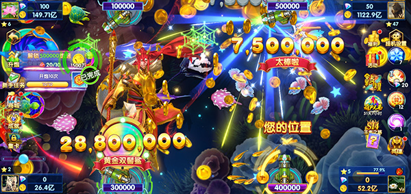 2、注意随时切换炮台在捕鱼来了中,炮台分为1倍炮,5倍炮,多倍炮等等,每种炮台发射的炮弹的威力各不相同,花费的金币也不同,那么就要根据想要捕捉的目标,随时切换炮台,以最划算的花费获取最高的收益,不要选定了一种就一直用下去,要利用好每种炮台的不同威力