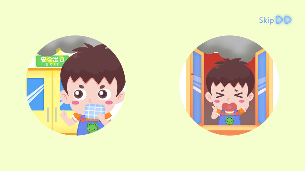 2、火警宣传动画,覆盖了如何防止火灾,发生火警时如何逃生,以及消防员的特征。