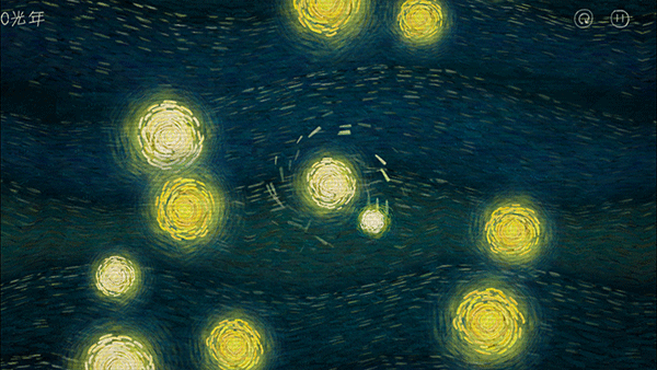 1、以画家梵高的作品星空作为游戏背景,在星星中不断穿梭前进,十分震撼
