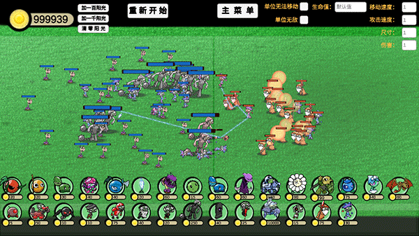此外,植物大战僵尸模拟器游戏还有沙盒模式,在这个模式中你可以自由创造各种对抗阵营,通过在游戏中自由的放置各种类型的防御植物,抵御僵尸大军的入侵,打造更奇葩的战斗模式,感兴趣的话欢迎来下载试玩。