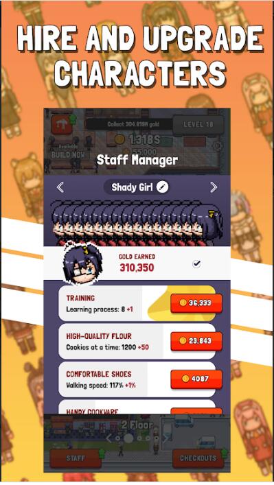 2. 丰富有趣的玩法,助你不断升级咖啡店,雇佣更多员工,提升管理水平。