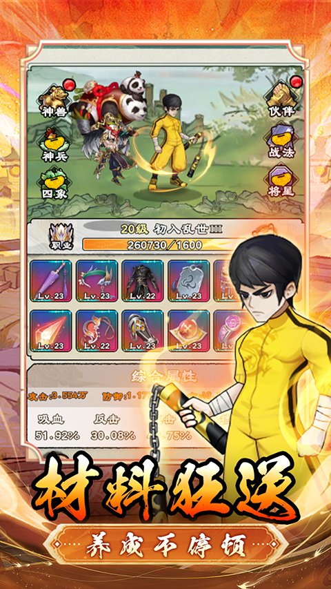 不仅如此,为了玩家有更好的游戏体验,上线还赠送了套装无敌李小龙,加速开箱,8888仙玉、600招募令等诸多新手礼包。休闲是游戏的主旋律,如果你厌倦了快节奏的游戏,不如体验一下这款游戏。