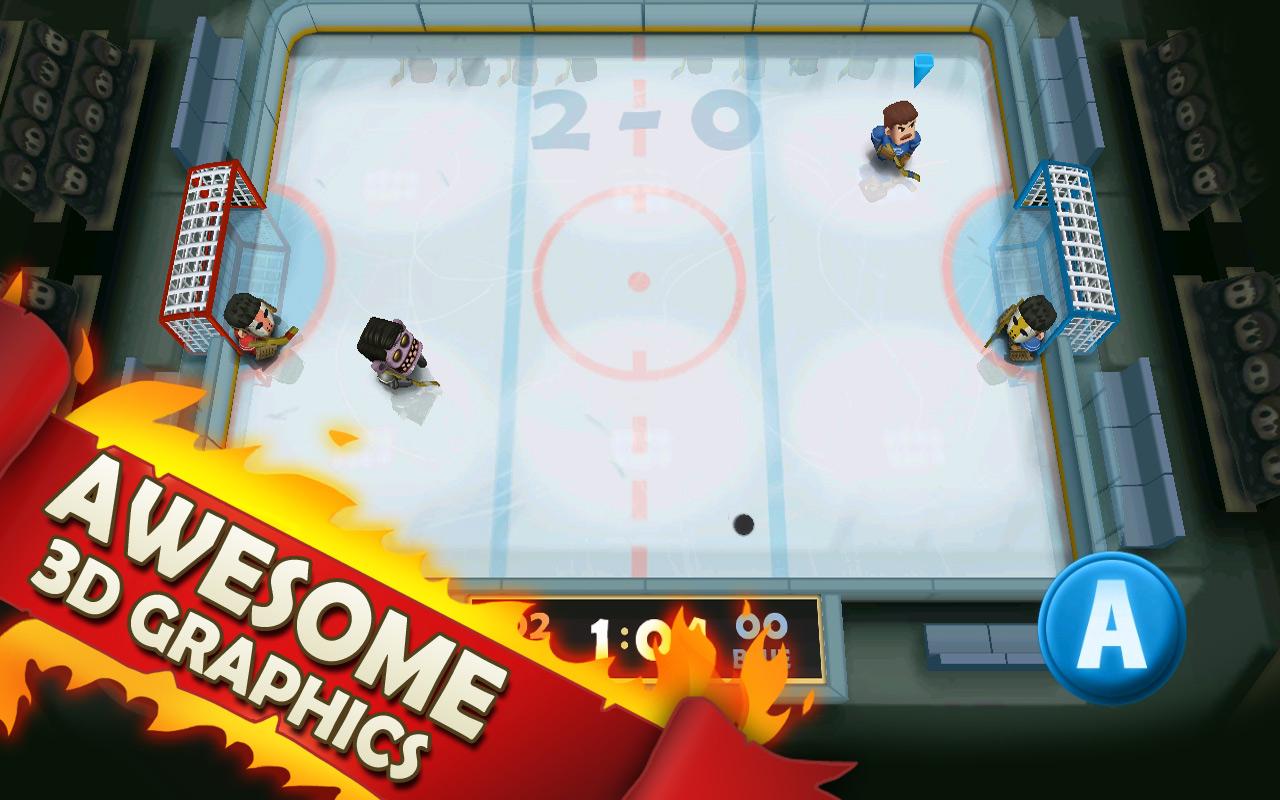 超过200万的玩家!球员面临关闭跨溜冰场,在曲棍球决斗 一个球员和一个守门员各一个侧面。游戏是快速,粗糙,有玩家花尽可能多的时间吃了冰作为对他们的脚。有三种不同的单人游戏模式(锦标赛,快速匹配和死斗)和单设备多人。