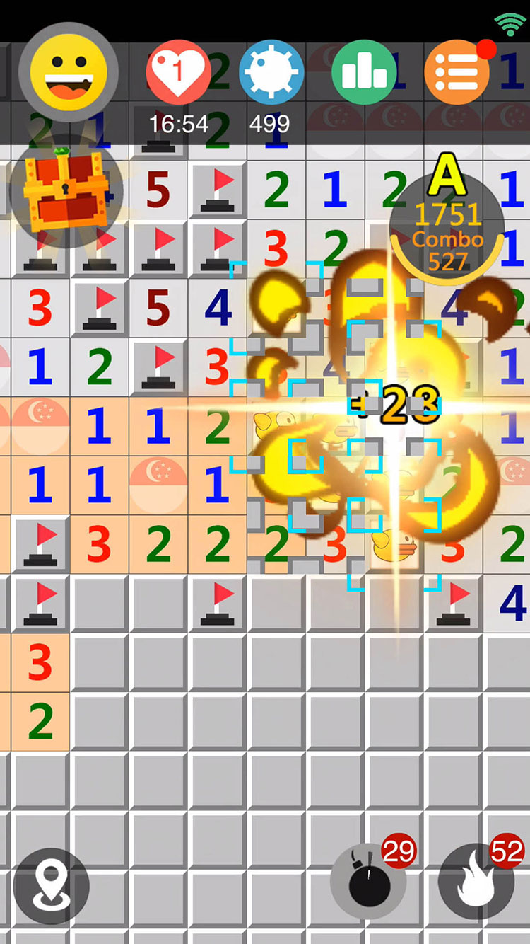 《天天爱扫雷》是一款真正的千人同时在线.io类扫雷游戏,你可以在大地图中遇到各种各样风骚的扫雷玩家,大家一起协力扫雷。当地图上的千万颗雷都被玩家们排除,地图密码将被揭开,玩家将一同进入全新阶段,不断挑战世界最多扫雷任务的新记录。游戏同时保留了单机扫雷高级模式99雷的经典玩法,作为PVP据点存在,所有人都可以通过挑战据点来争夺它,谁能最快的通过就能占领据点,成为据点之主等待其他玩家的挑战。