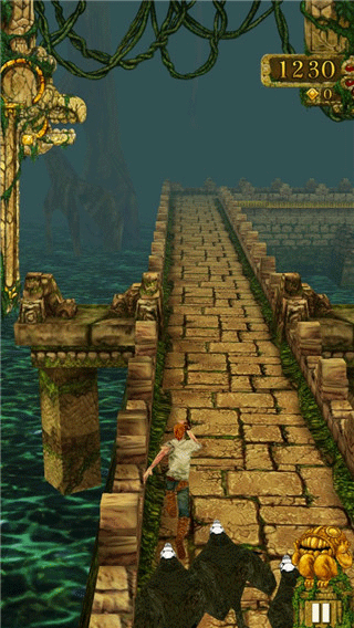 1、神庙逃亡经典版安卓版游戏中遇到一些断路或者石板挡路情况,上划下划,即跳跃或滑行等方式即可通过