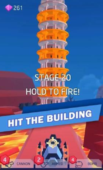 塔楼摧毁者游戏是一款以摧毁塔楼为目标的休闲闯关类手游,游戏画风简约但画面感强,采用卡通的人物形象和场景让玩家的视觉不会疲劳,创新的游戏模式,玩家只需要控制炮台发射炮弹去摧毁面前的塔楼,游戏十分魔性有趣。