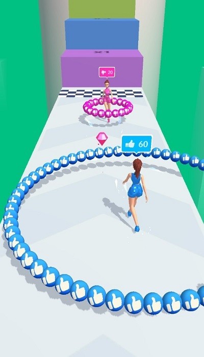 网上我最美是闯关类跑酷游戏,有着非常简洁的游戏画面,玩法十分的魔性,玩家要打造最美的自己,获得点赞来和差评党进行对抗,不断向前走,要躲避沿途的障碍物来抵达终点,收集高点数以获得更大的声望。