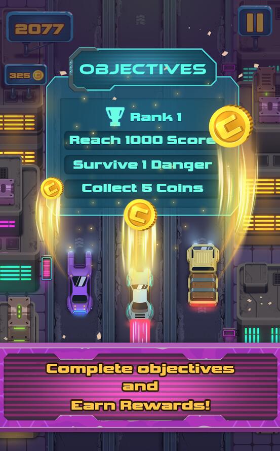 《无人机逃生》是一款精美街机风的全新赛车手游,新颖的玩法,超刺激的赛车场景,还有独特的技能系统,充满未来风的画面,一定会让你沉浸其中,在这款充满未来感的街机游戏中,时间选择和快速反应是关键。通过停止或加速你的车来逃脱无人机,并解锁特殊的强力道具尽量延长游戏时间!对此感兴趣的玩家快来下载吧!