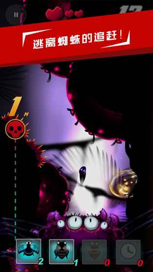 一个手指即可轻松操作游戏。你要帮助神秘主角在危机四伏的洞穴中逃生,快速躲避前方障碍物,甩掉身后巨大蜘蛛地疯狂追击。
