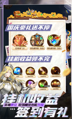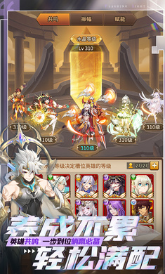 闪烁之光下载官网手机版安装是一款以神话题材为基础的史诗级放置类卡牌手游。游戏中有超过100位可盐可甜可出击的神明英雄听候差遣,玩家可以自由组合阵容,采用战前布阵的回合制战斗模式进行战斗。游戏中的AI会自动进行战斗,玩家可以通过挂机玩法轻松获得经验和奖励。