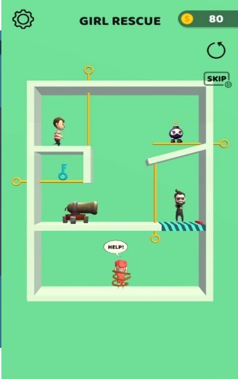 将每一个关卡中的拉针拉开就能救出每一个被困的人;