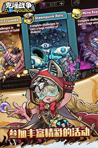 6大克隆阵营:电系、火系、土系、水系、混沌系、秩序系,超百种组合方式,极具变化的战术策略,打造最强克隆人军团!