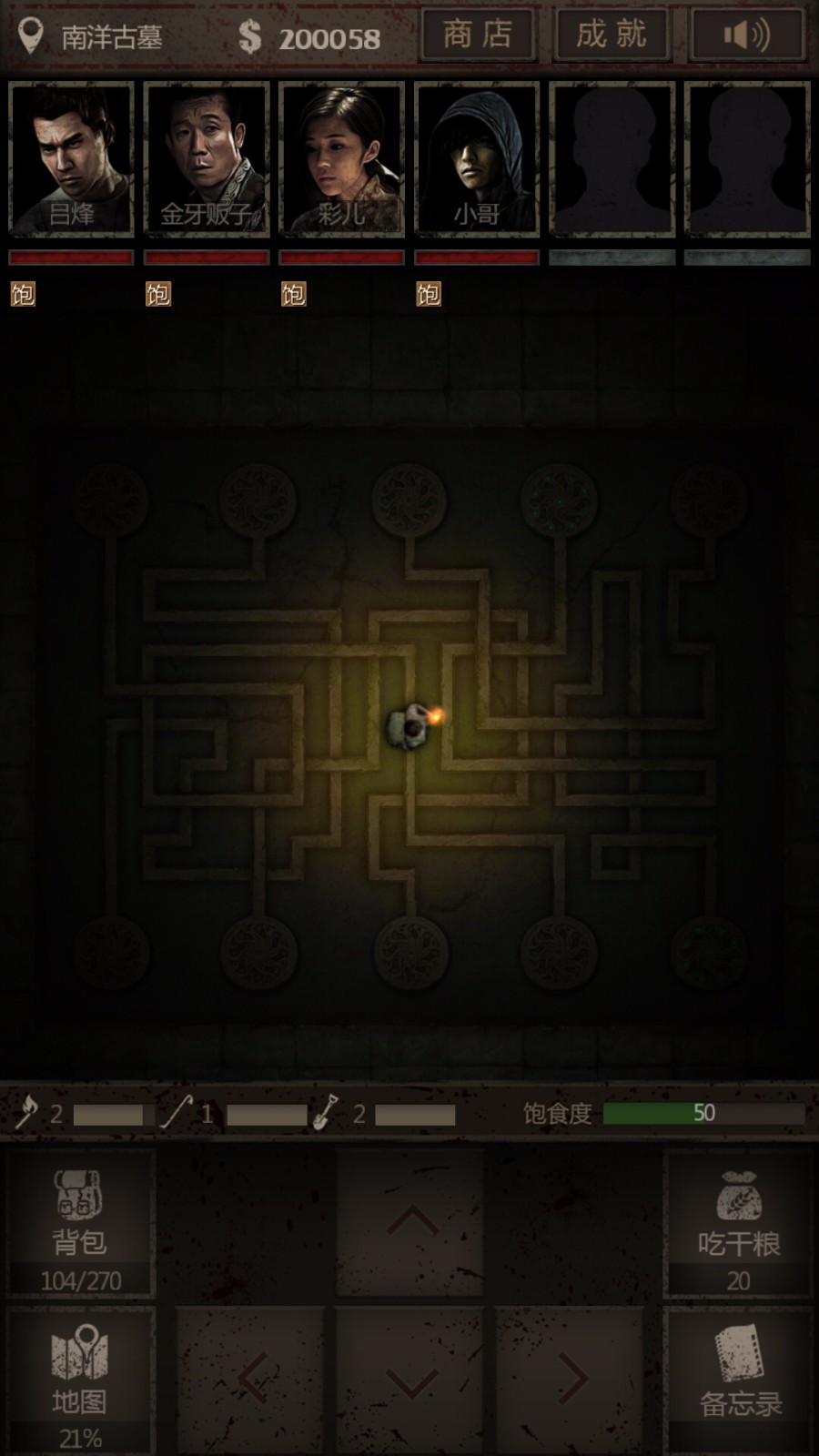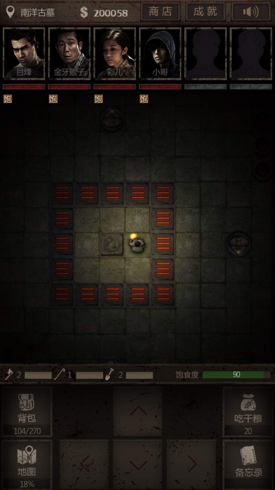 《盗墓长生印》玩家需要通过探寻五座古墓,拼凑一个跨越六个时代的故事。单机盗墓探险题材游戏,有RPG元素,也不乏盗墓、冒险、解谜、地牢、随机等元素,融合多种游戏性和丰富策略。游戏机制方面是“冒险+经营”这种比较传统的方式。经营方面轻松休闲,可以挂挂机、钓钓鱼、跟商人砍砍价。但冒险部分中,玩家不仅要时刻提防墓中的粽子,还要绞尽脑汁破解墓中数十种机关;要计算补给,还要尽量获取更多物资,紧张又烧脑。