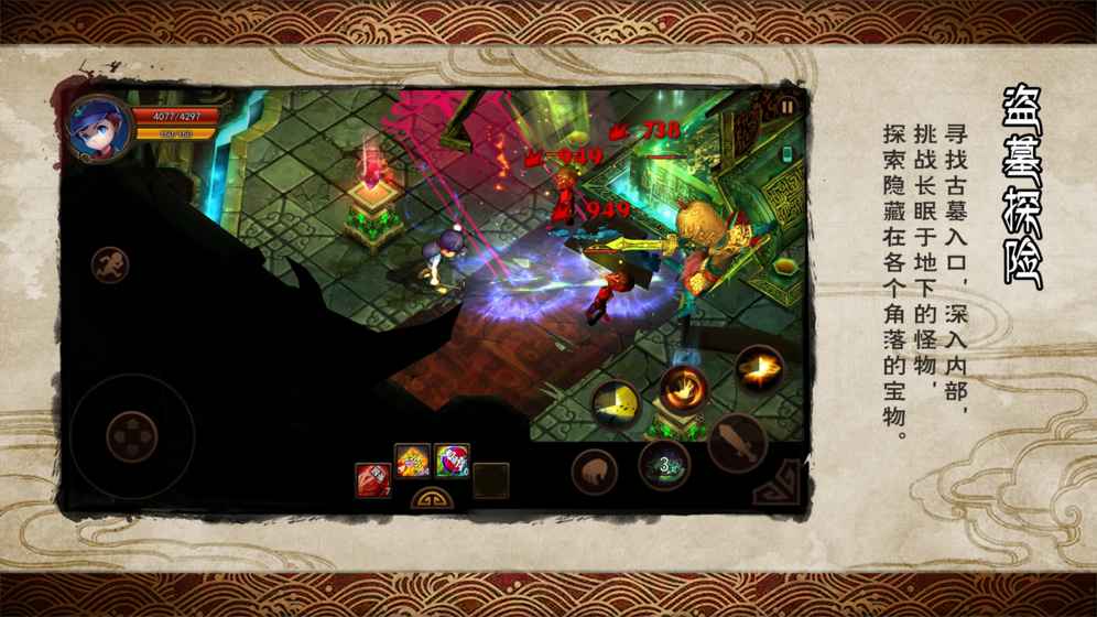1、真正的盗墓手游,游戏所有玩法都围绕着盗墓与宝物争夺;