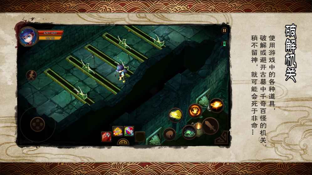 玩家将在游戏里扮演一名刚刚入学的小学生进入古墓之中,破解重重机关,消灭各种怪物,击败前来夺宝的其他玩家,发掘出藏于各种意想不到地点的绝世宝物,一步步成长为真正的盗墓高手!