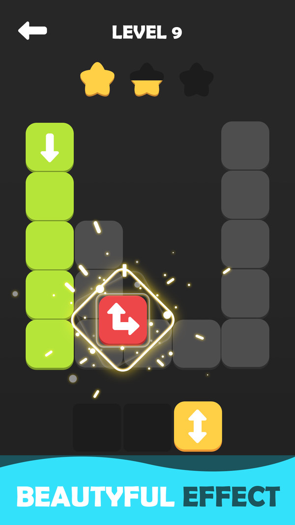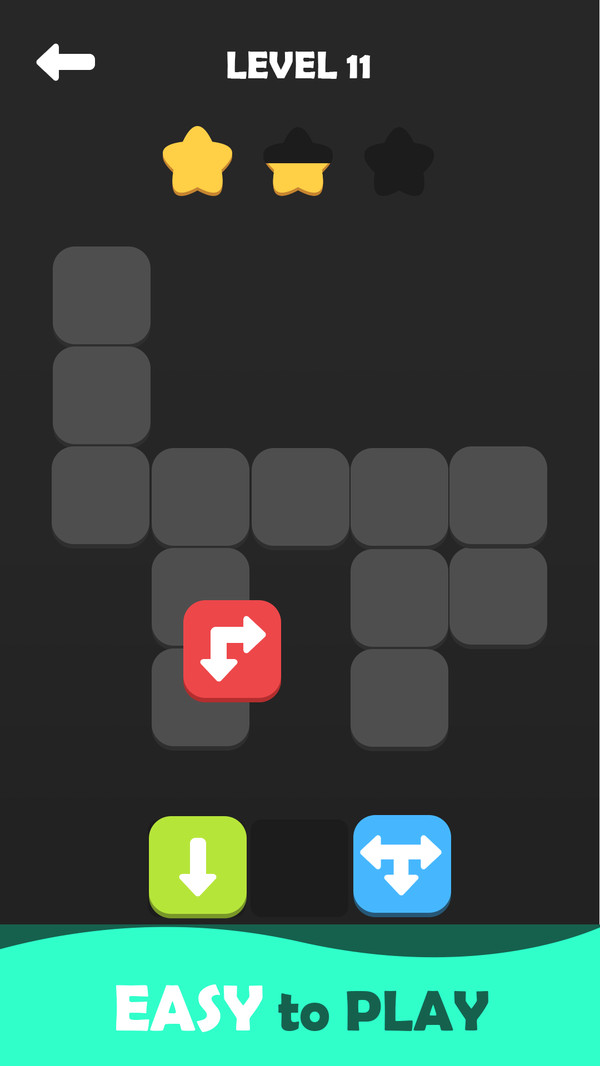 这是一款休闲益智的方块游戏。游戏玩法类似俄罗斯方块,玩家在游戏中控制下落的方块,使用合适的转向箭头连接他们,将关卡中的空格全部填充完毕,即可进入下一层次挑战。您需要做的就是拖放箭头块以填充所有空白,每个箭头块将定义关卡中的方块下路路线,你必须找到一种方法来填补它。