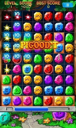 2、匹配的珠宝,直到板透明度,宝石之星将会出现。