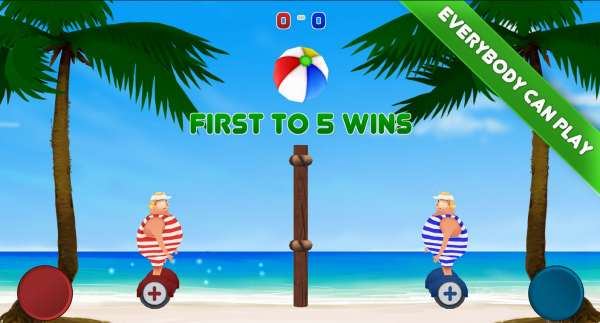 并不是传统的6v6的排球,游戏中只有身着红蓝两色衣服的酷似相扑身材的人拦网对战