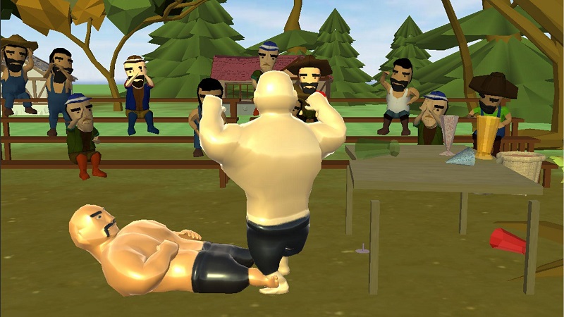 玩家将在游戏中操作一个裸露上半身的肌肉勐男,你的对手同样是如此,而双方身上均被涂满了精油,因此相当滑,你需要掌握游戏的物理原则,将对方摔倒,来一场赤身肉搏。在2人游戏中必须互相摔跤,并尝试将其他玩家击倒在地!控件也需要一些使用,你必须掌握游戏的物理特性。