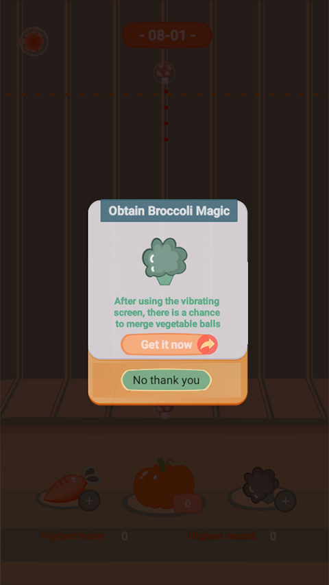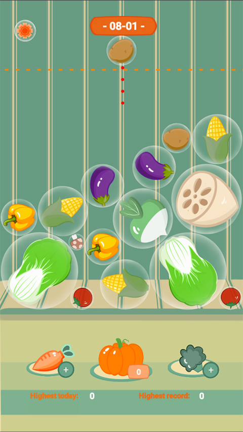 3、注意:因为各类蔬菜都被气泡覆盖,所以会流动,当相同的两个蔬菜碰撞,即可合成新的蔬菜品种。