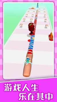 3、游戏中闯关的角色是一根手指,玩家需要不断的叠加指甲油,让它变得更长。
