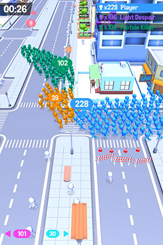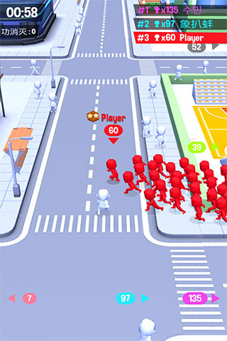 2、非常魔性的游戏玩法,通过不断吸纳零散行人壮大自己的队伍